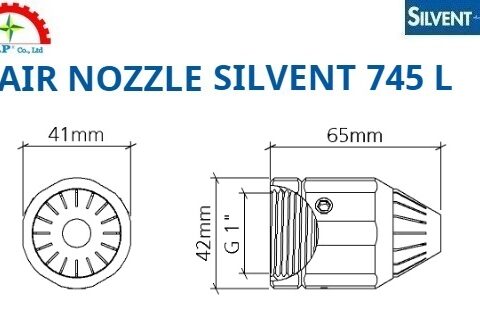– Silvent 745 L – Đầu phun khí nén 745 L là đầu phun Laval bằng thép không gỉ tận dụng tối ưu khí nén, tạo ra lực thổi rất cao và tập trung. Hiệu ứng này đạt được bằng cách bao quanh lõi không khí di chuyển với tốc độ siêu âm bằng một lớp màng bảo vệ không khí chuyển động song song với dòng lõi.